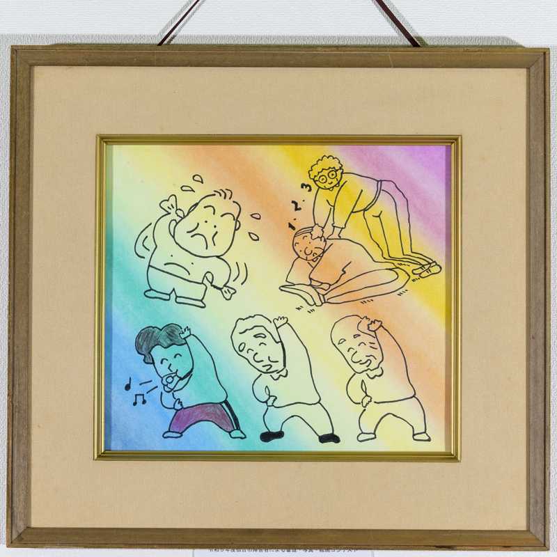 題名:「介護ストレッチ体操で健康第一」 パステルアート